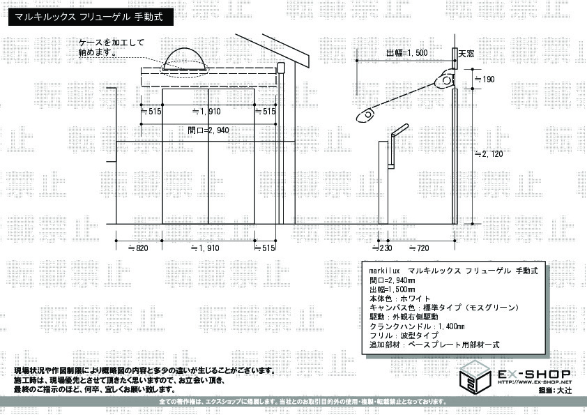 サイズ | 間口 2,940mm 出幅 1,500mm |
