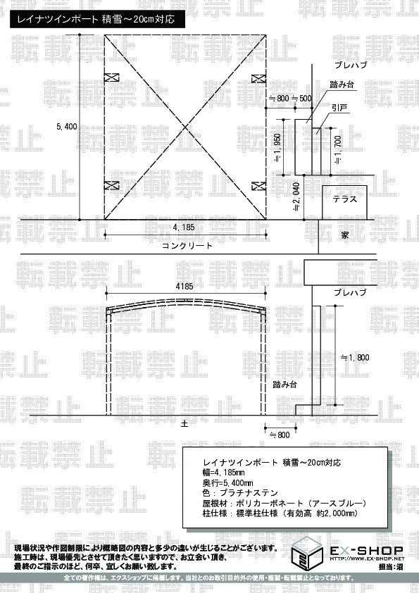 | 屋根高等 | 標準柱仕様(有効高 約2,000mm) |