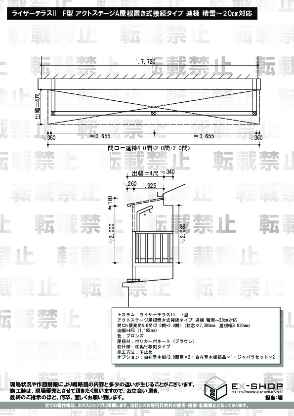 サイズ | 屋根幅 8,020mm 出幅 1,185mm |