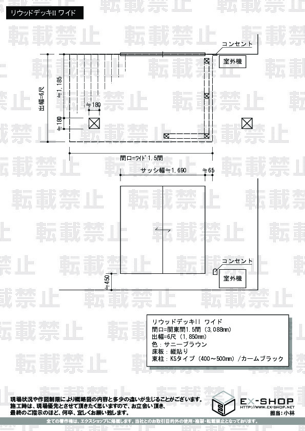 | サイズ | 間口 3,088mm 出幅 1,850mm |