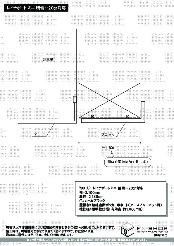 屋根高等 | 標準柱仕様(有効高 約1,800mm) |