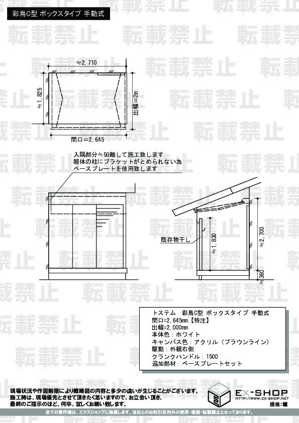 サイズ | 間口 2,645mm 出幅 2,000mm |