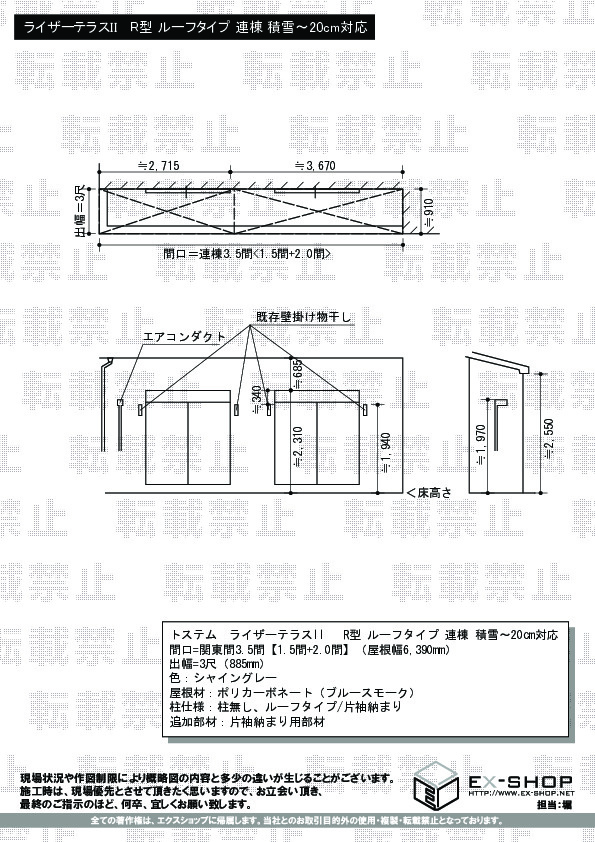 サイズ | 屋根幅 6,390mm 出幅 885mm |