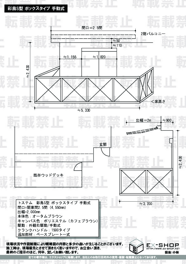 サイズ | 間口 4,550mm 出幅 2,000mm |