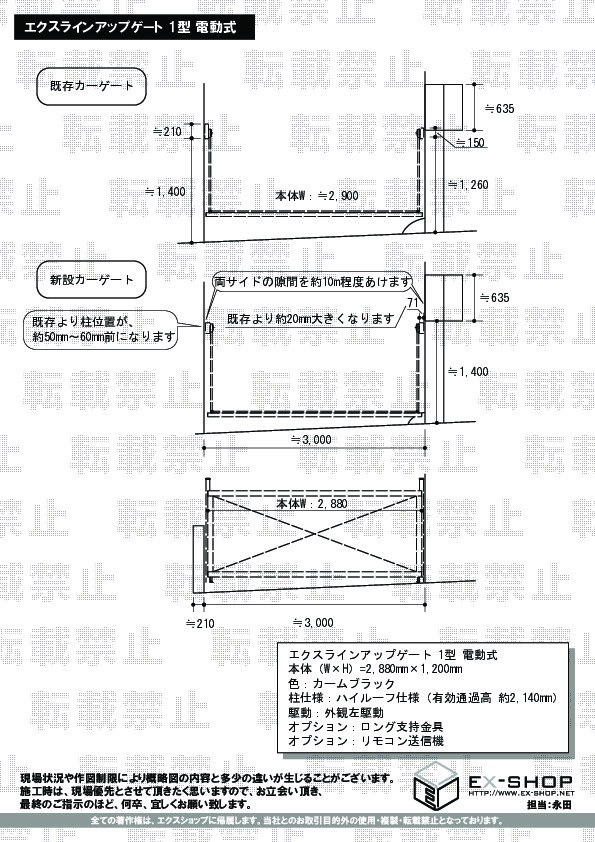 現在自動カーゲートがついていますが、ゲートの幅を広くしたいと考えています。