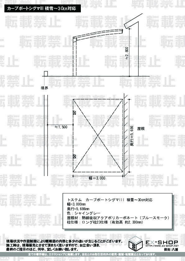 | サイズ | 幅 3,000mm 奥行 5,686mm |