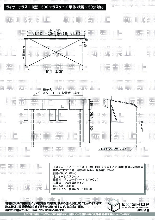 サイズ | 屋根幅 3,660mm 出幅 1,785mm |