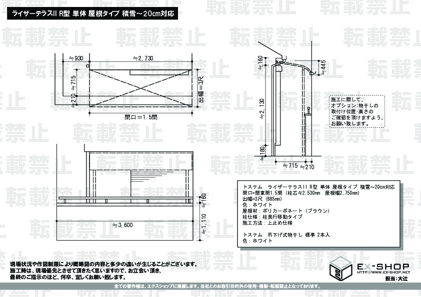 サイズ | 屋根幅 2,750mm 出幅 885mm |