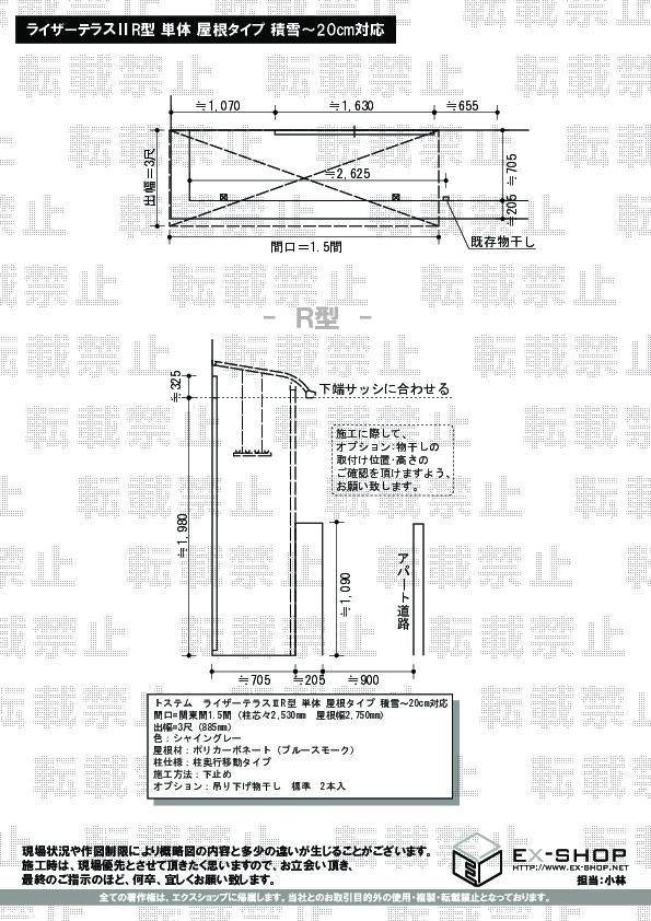 サイズ | 屋根幅 2,750mm 扉幅 885mm |