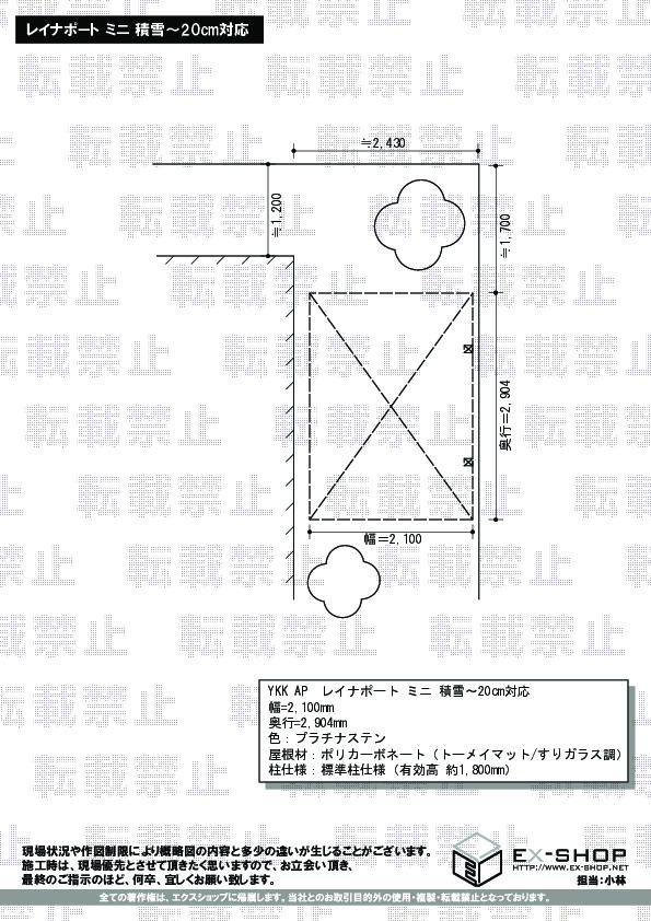 | 屋根材等 | ポリカーボネート(トーメイマット/すりガラス調) |