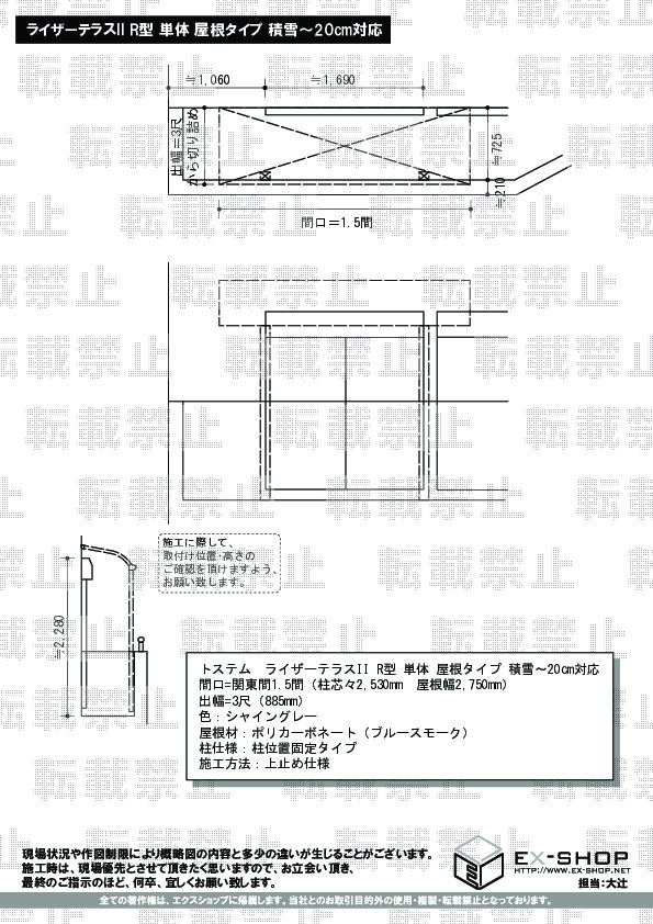 サイズ | 屋根幅 2,750mm 出幅 885mm |