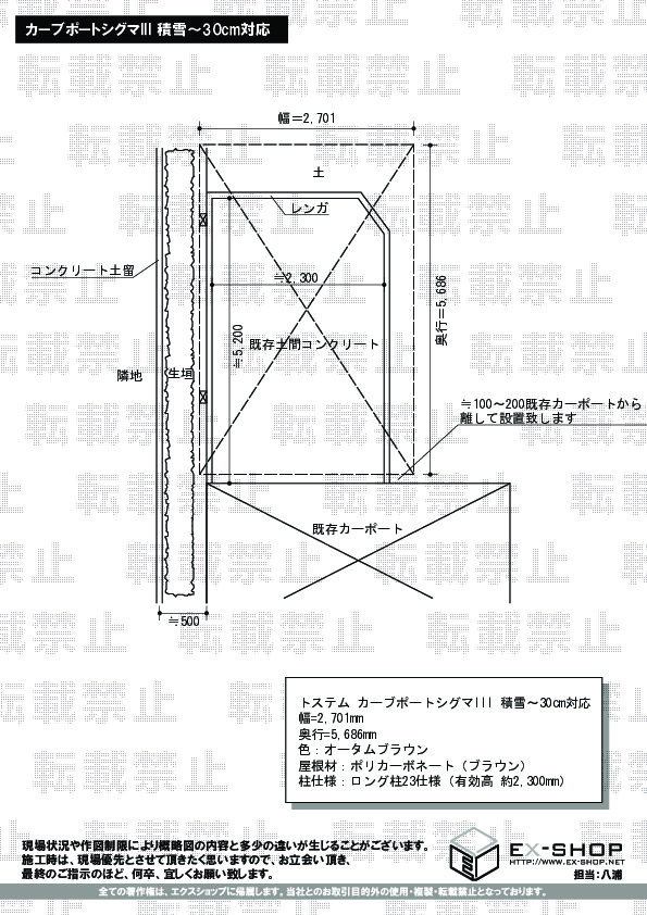 | 屋根高等 | ロング柱23仕様(有効高 約2,300mm) |