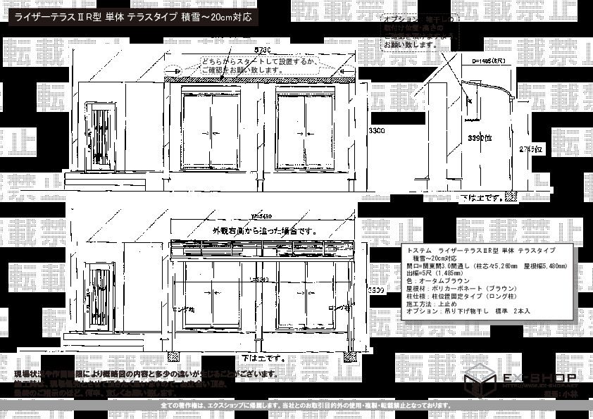 | サイズ | 屋根幅 5,480mm 出幅 1,485mm |