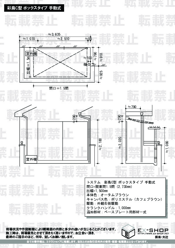 サイズ | 間口 2,730mm 出幅 1,500mm |