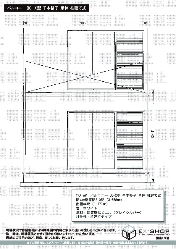 美しいイエローの外壁に、バルコニー BC-X型のホワイトの縦格子が良く映えて、素敵なお仕上がりでございますね。なかなかイメージの湧きにくい大型のエクステリアの施工でございますので、少しでも安心してご利用頂ければとの思いで、施工概略図を合わせてご提示致しておりますが、お役に立てましたこと大変嬉しく存じます。担当致しました施工士もご期待にお応えすることができ、大変喜んでおります。これからも、快適なお住まいづくりのパートナーとして、エクスショップをご利用頂けますよう、宜しくお願い致します。