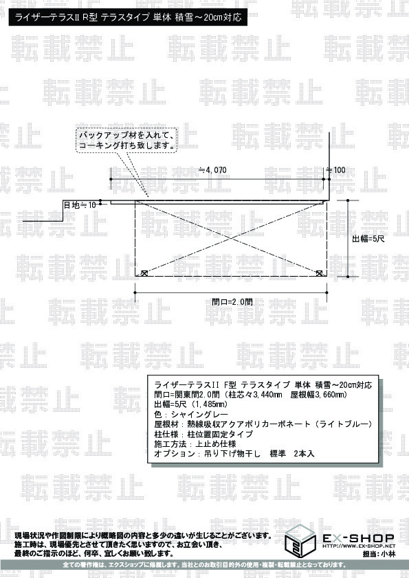 サイズ | 屋根幅 3,660mm 出幅 1,485mm |