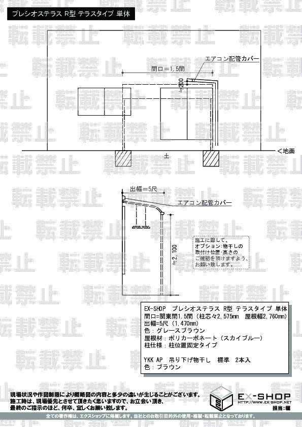 サイズ | 屋根幅 2,760mm 出幅 1,470mm |