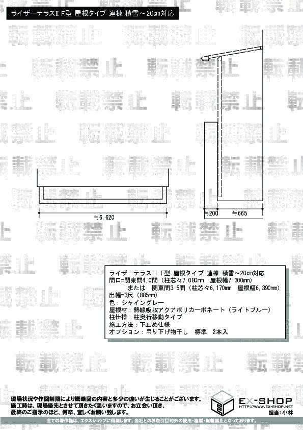 | サイズ | 屋根幅 6,390mm 出幅 885mm |