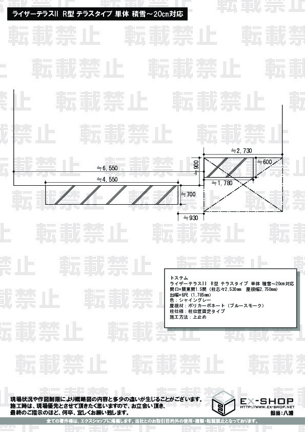 サイズ | 屋根幅 2,750mm 出幅 1,785mm |
