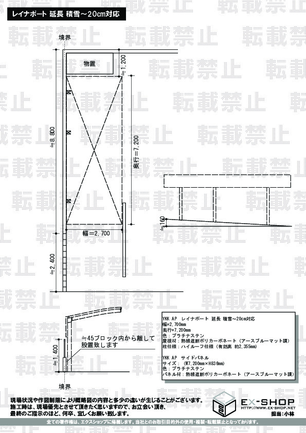 弊社をご利用頂きましての、率直なご意見をお寄せ頂き、誠に有難うございます。商品や、施工内容につきまして、お客様のご要望を正確にお聞きする事が一番大切だと存じますので、出来るだけお客様のご負担にならないよう、マニュアル化も含め、社員のスキルアップを図って参る所存にございます。今回施工させて頂きましたレイナポートは、延長タイプでございますが、お客様の敷地に綺麗に納まりましたこと、大変嬉しく存じます。今後も変わらず、お客様のご満足の為に精進して参りたいと存じますので、また何かございましたらご遠慮なくエクスショップまでご連絡下さい。