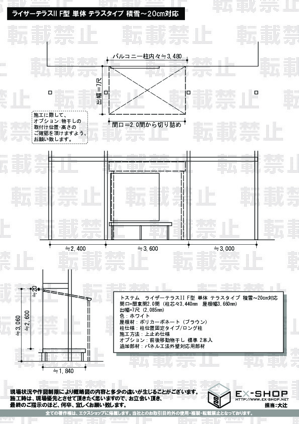 サイズ | 屋根幅 3,660mm 出幅 2,085mm |