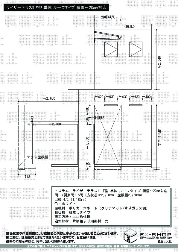 | サイズ | 屋根幅 2,750mm 出幅 1,185mm |