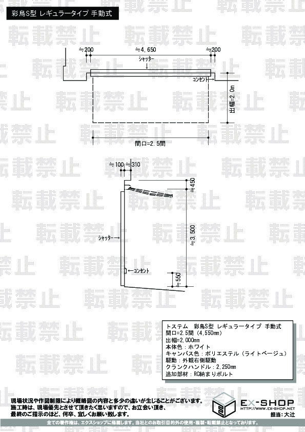 サイズ | 間口 4,550mm 出幅 2,000mm |