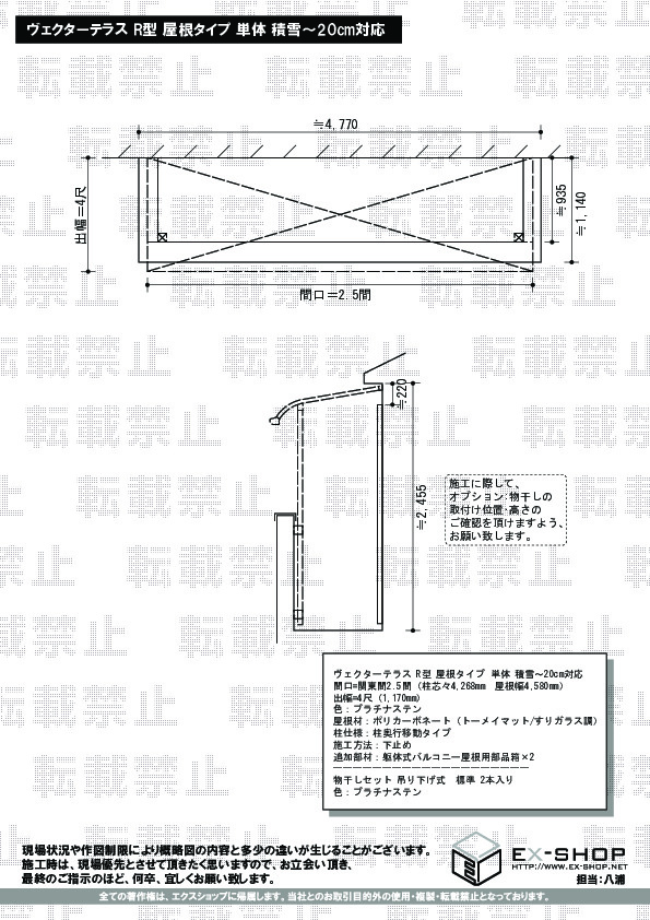 | サイズ | 屋根幅 4,580mm 出幅 1,170mm |