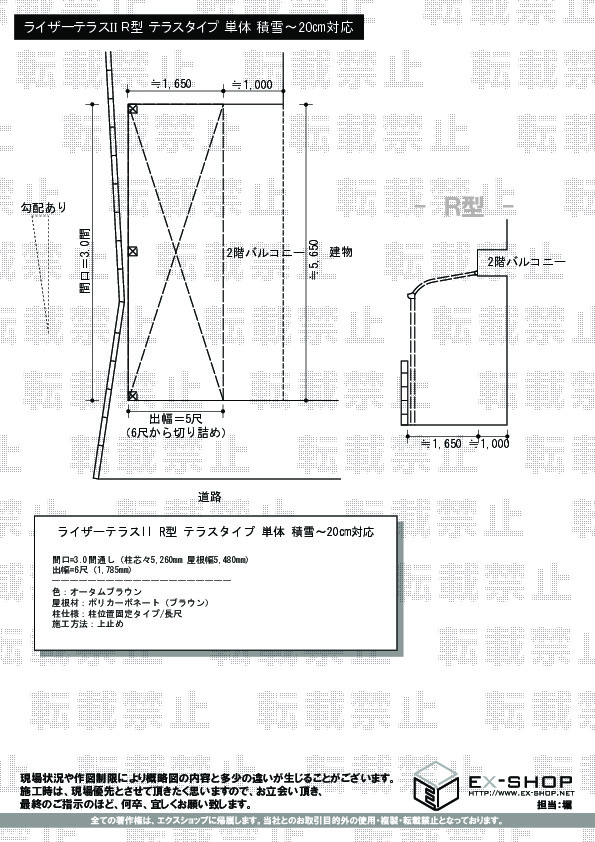 サイズ | 屋根幅 5,480mm 出幅 1,785mm |