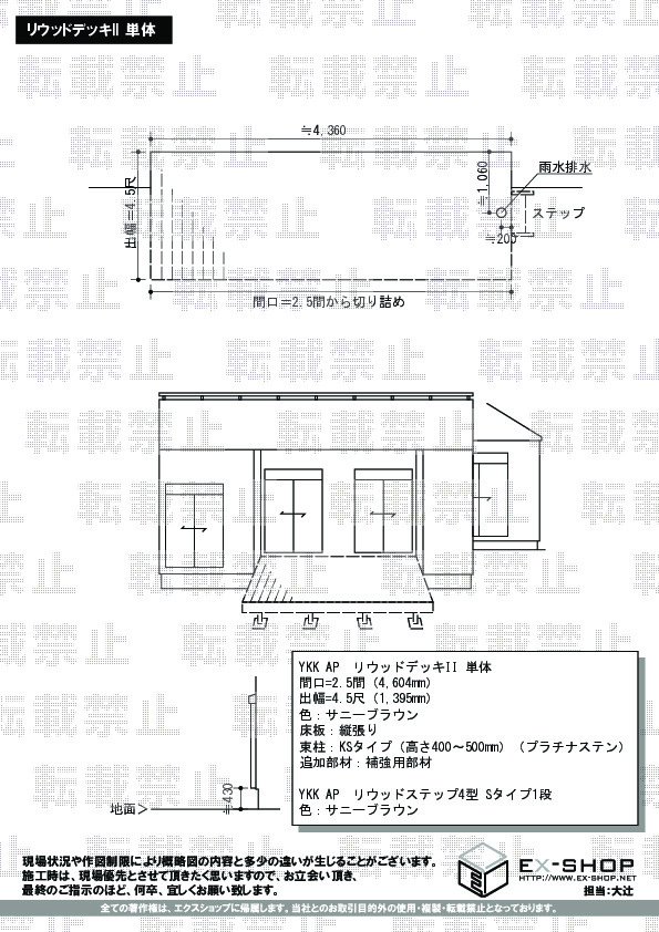 | サイズ | 間口 4,604mm 出幅 1,395mm |