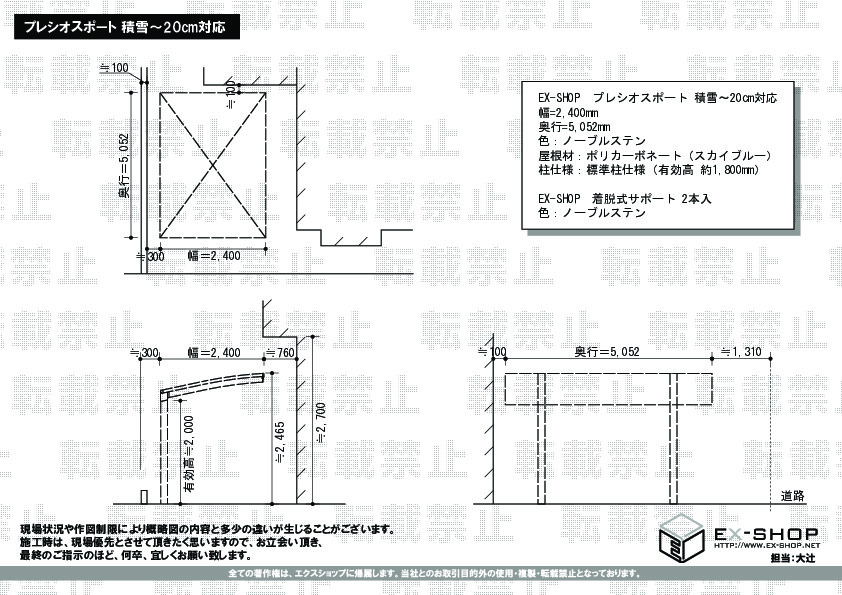 | 屋根材等 | ポリカーボネート(スカイブルー) |