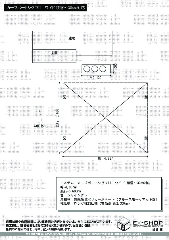 お客様の声のお写真をご参考頂いたとのことで、有難うございます。顔の見えないネットショッピングではありますが、お客様に出来るだけご安心して頂きたいとの思いで、お客様から頂きます施工写真とご感想を掲載させて頂いておりますが、少しでもお役に立てましたら幸いでございます。ワイドタイプのカーブポートシグマIII 施工させて頂きましたが、ロング柱のご利用で大変開放感があり素敵でございますね。今後も絶えず企業努力を続け、更にお客様にご満足頂けるサービスを目指すよう、努めて参ります。また機会がございましたら、是非エクスショップをご利用頂けますよう、宜しくお願い致します。