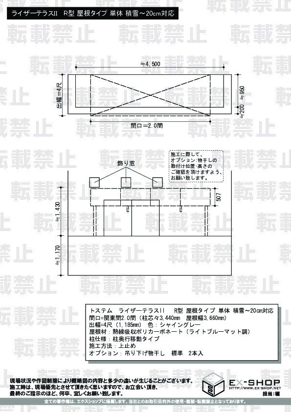 サイズ | 屋根幅 3,660mm 出幅 1,185mm |
