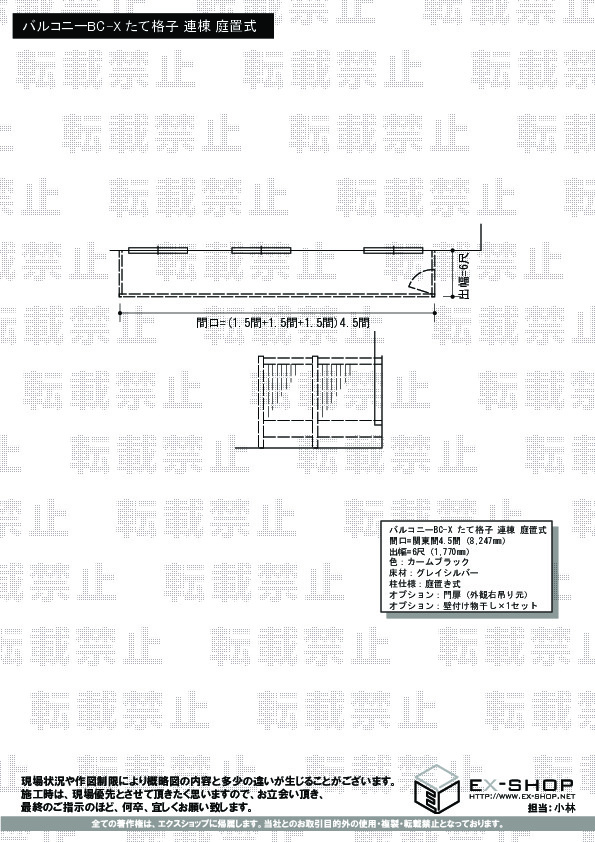 ルシアスバルコニー 屋根置式 たて格子 単体