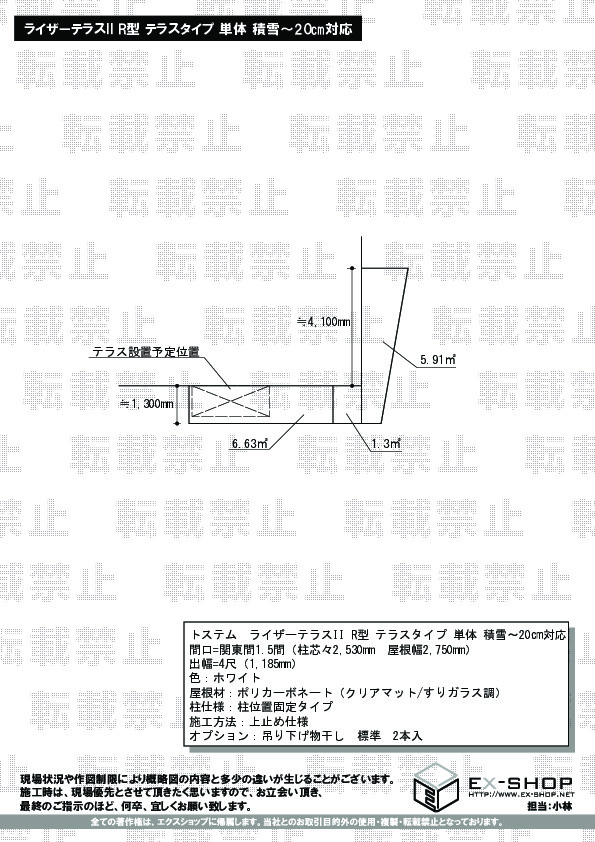 サイズ | 屋根幅 2,750mm 出幅 1,185mm |