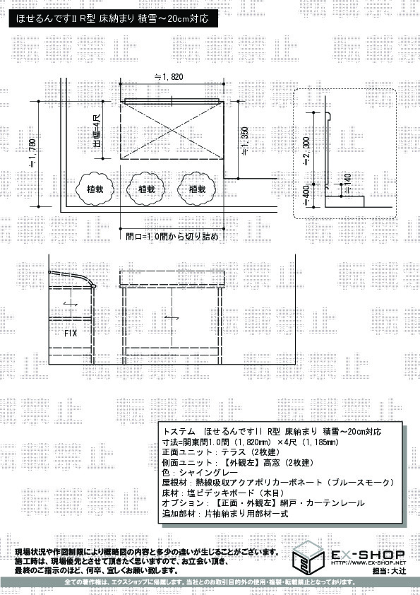 | サイズ | 間口 1,820mm 出幅 1,185mm |