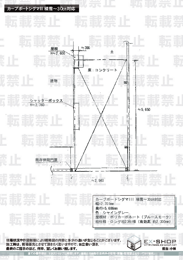 | 屋根高等 | ロング柱23仕様(有効高 約2,300mm) |