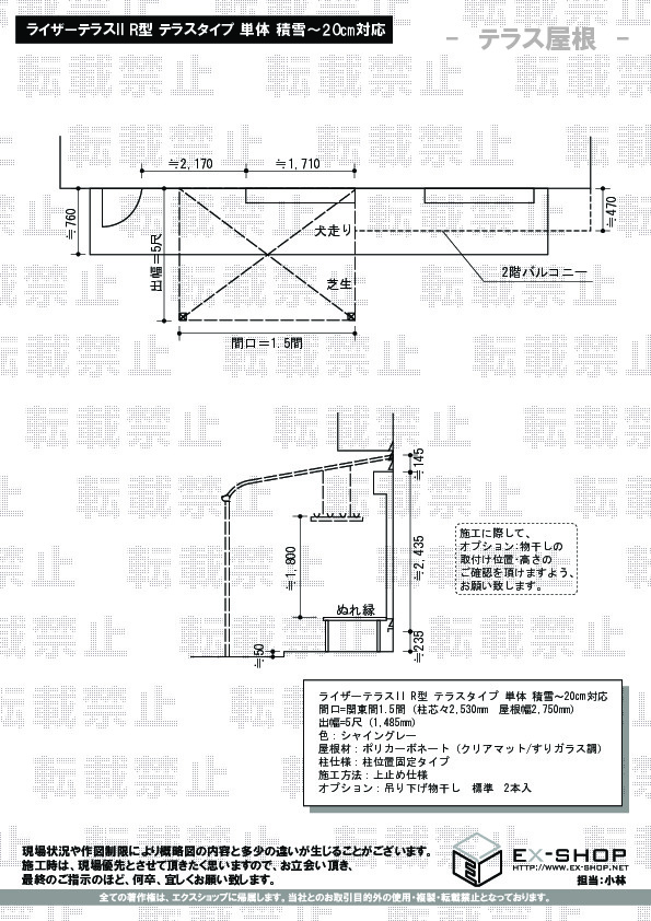 サイズ | 屋根幅 2,750mm 出幅 1,485mm |