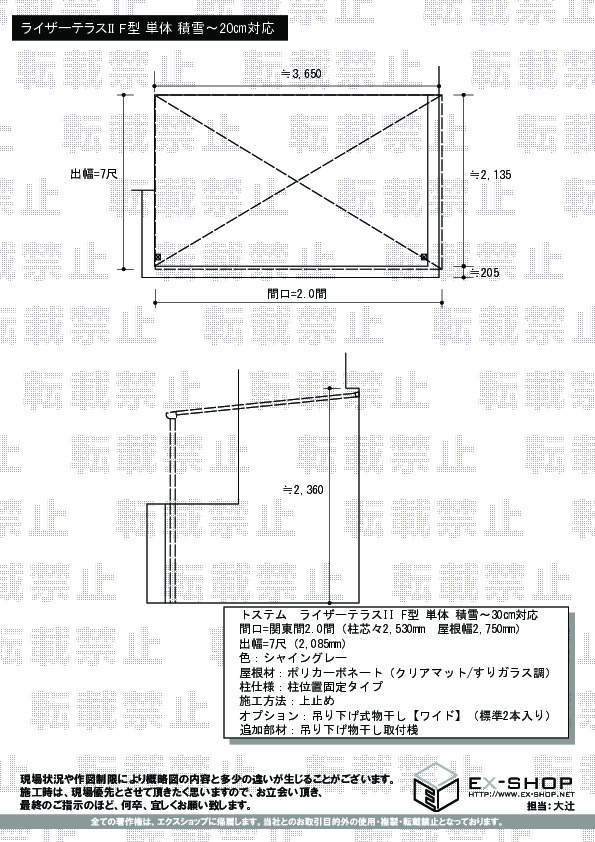 | サイズ | 屋根幅 2,750mm 出幅 2,085mm |