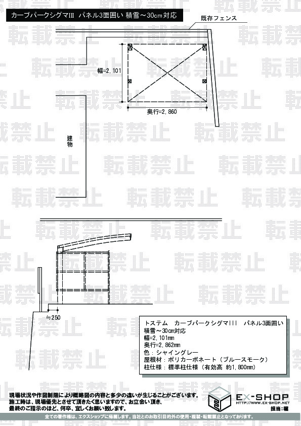 | 屋根材等 | ポリカーボネート(ブルースモーク) |
