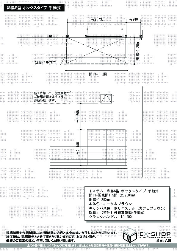 サイズ | 間口 2,730mm 出幅 1,250mm |