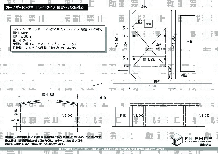 | 屋根高等 | ロング柱23仕様(有効高 約2,300mm) |