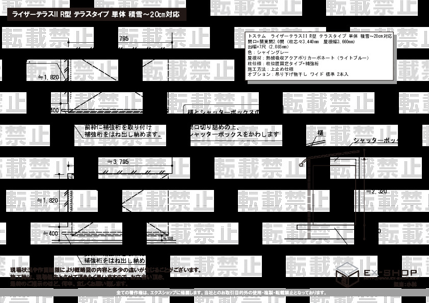 サイズ | 屋根幅 3,660mm 出幅 2,085mm |