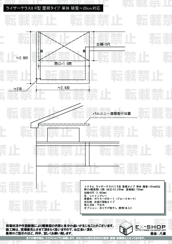 サイズ | 屋根幅 2,750mm 出幅 1,485mm |