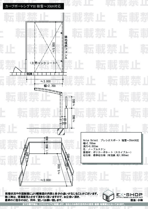 | サイズ | 幅 3,000mm 奥行 4,980mm |