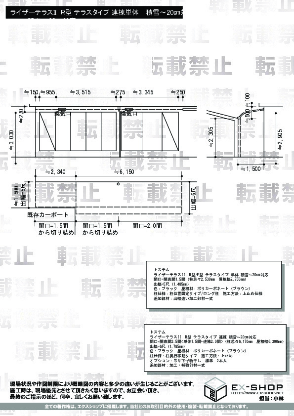 | サイズ | 屋根幅 4,570mm 出幅 2,385mm |