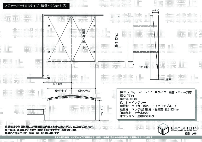 | 屋根高等 | ロング柱28仕様(有効高 約2,800mm) |