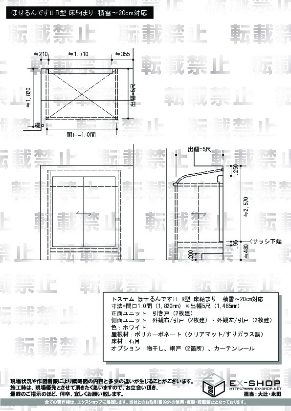 | サイズ | 間口 1,820mm 出幅 1,485mm |