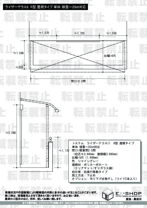 サイズ | 屋根幅 3,660mm 出幅 1,485mm |