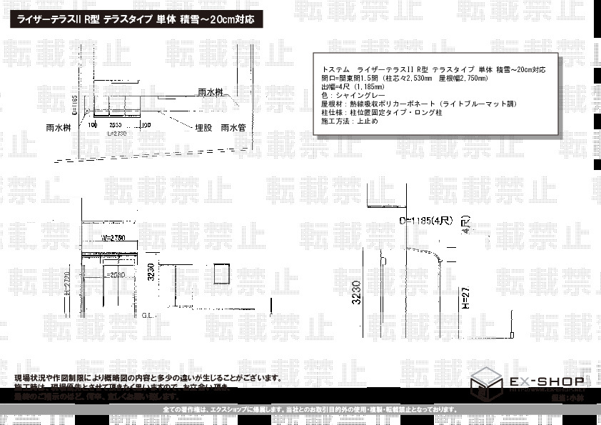 サイズ | 屋根幅 2,750mm 出幅 1,185mm |